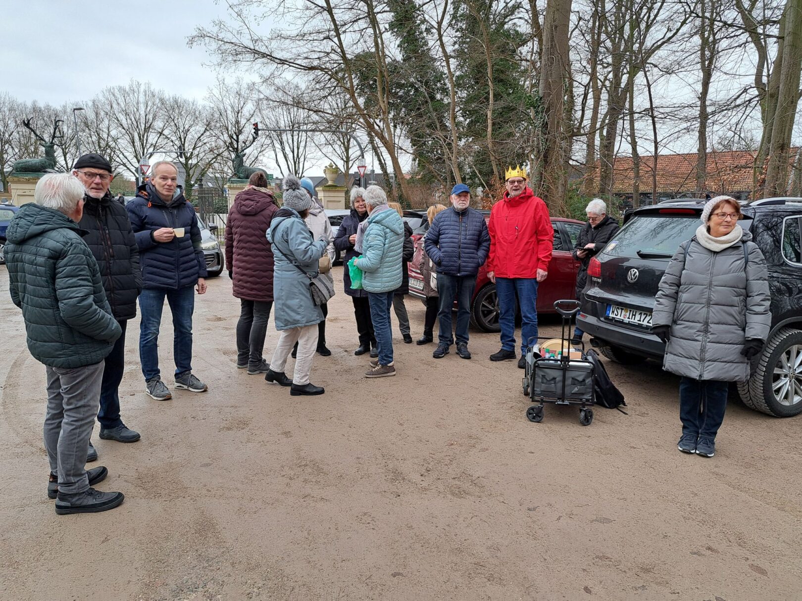 Die diesjährige traditionelle Kohltour fand am 21. Februar statt. Das amtierende Königspaar, Hildbert und Hildegard – wobei Hildegard leider abwesend war – begrüßte die Teilnehmenden auf dem Parkplatz Rastede, am Eingang zum Schlosspark. Dort versammelte sich die Gruppe, um gemeinsam die Tour zu beginnen.