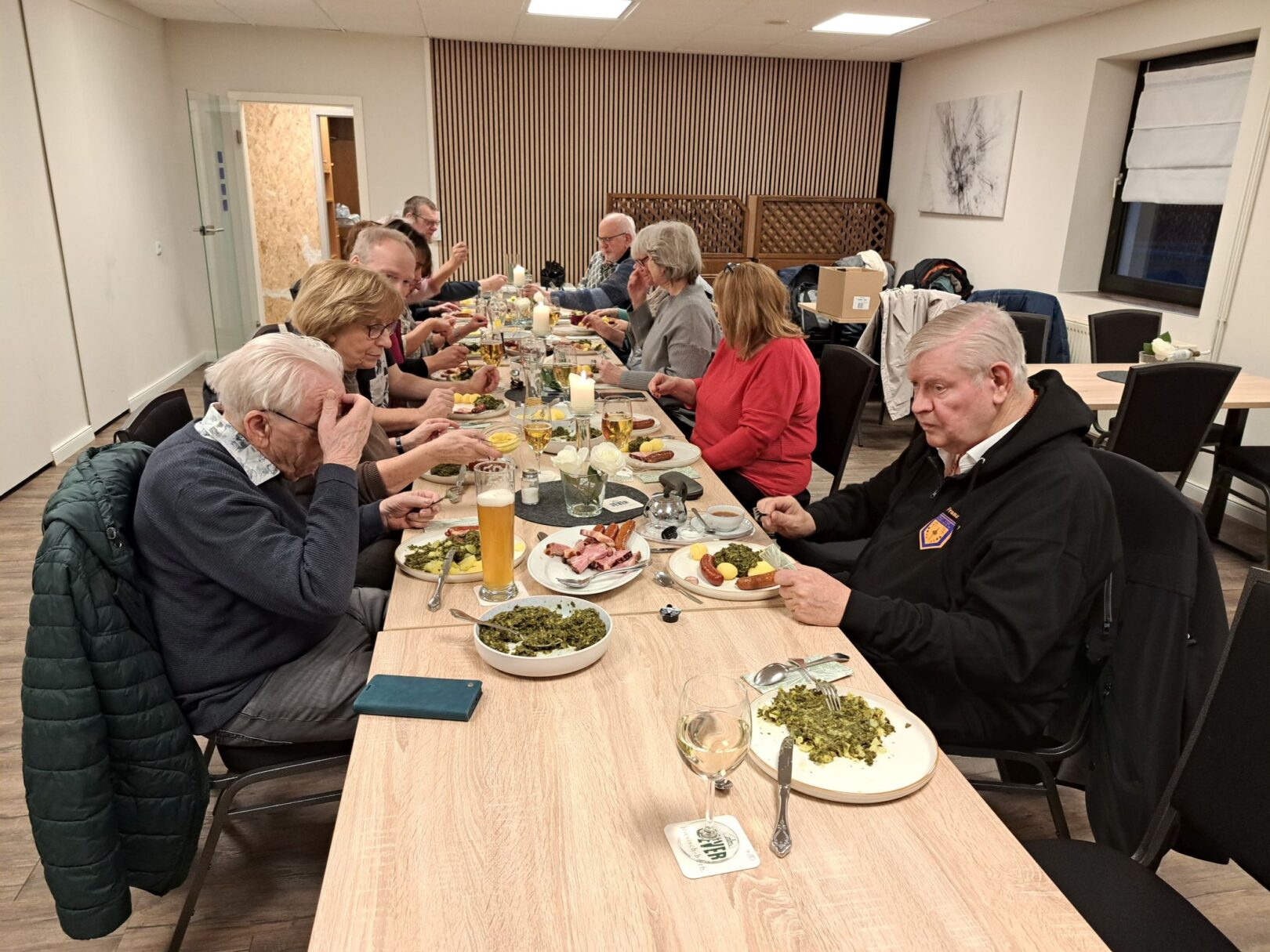 Nach etwa einer Stunde erreichte die Gruppe das Hotel Schlosspark, das als Ziel der Kohltour fungierte. Vor dem gemeinsamen Essen war zunächst ein Fragebogen auszufüllen. Teilnehmer, die Zugriff auf ihr Mobiltelefon hatten, konnten sich bei den vereinsbezogenen Fragen einen Vorteil verschaffen.