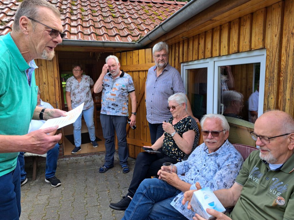 Am Samstag 26.07.25 hat der Verein wieder zum Sommerfest eingeladen. Insgesamt sind der Einladung 19 Teilnehmer gefolgt und die hervorragenden Gastgeber Werner und Hildburg haben wieder einmal dafür gesorgt, dass die Feier für alle Gäste super angenehm wurde. Nach der Begrüßung durch unseren Vorsitzenden Hildbert ging es schnell an die erste von 3 Spielserien.